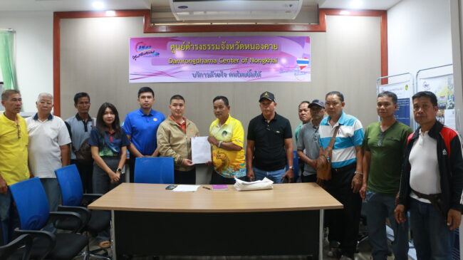 วันที่ 14 พฤษภาคม 2568 ที่ ศูนย์ดำธงธรรมจังหวัดหนองคาย ศาลากลางจังหวัด อ.เมืองหนองคาย นายอุรัย โนนทิง ผญบ.บ้านนาสิงห์ หมู่ที่ 2 ต.พระบาทนาสิงห์ อ.รัตนวาปี จ.หนองคาย พร้อมด้วยตัวแทนชาวบ้านกว่า 10 คน เข้ายื่นหนังสือถึงผู้ว่าราชการจังหวัดหนองคาย ผ่านศูนย์ดำธงธรรมจังหวัดหนองคาย เรื่อง ขอความช่วยเหลือในการตรวจสอบระบบกรองน้ำหนองม่วงบ้านพระบาทนาสิงห์ หมู่ที่ 2 ต.พระบาทนาสิงห์ อ.รัตนวาปี