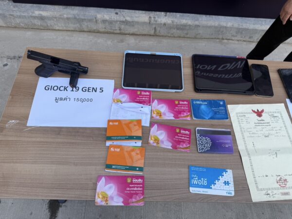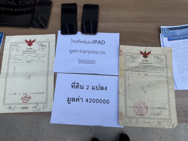 นอกจากนี้ เจ้าหน้าที่ตำรวจยังได้ร่วมกันตรวจยึดทรัพย์สินของกลาง รวมมูลค่ากว่า 6 ล้านบาท ดังนี้ รถจักรยานยนต์ Harley Davidson จำนวน 1 คัน รถจักรยานยนต์Honda CRF250 จำนวน 1 คัน รถจักรยานยนต์Vespaจำนวน 1 คัน รถยนต์TOYOTA Fortunerจำนวน 1 คัน โฉนดที่ดิน จำนวน 2 แปลง อาวุธปืนสั้น ยี่ห้อGLOCK19 GEN 5 จำนวน 1 กระบอก โทรศัพท์มือถือiPhoneจำนวน 1 เครื่อง และ iPad จำนวน 2 เครื่อง