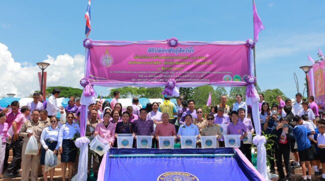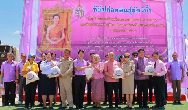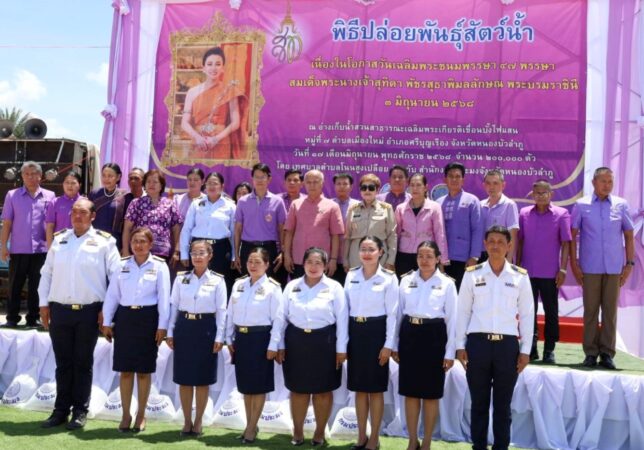 ประมงฯหนองบัวลำภู ปล่อยพันธุ์สัตว์น้ำ เนื่องในโอกาสวันเฉลิมพระชนมพรรษา สมเด็จพระนางเจ้าสุทิดา พัชรสุธาพิมลลักษณ พระบรมราชินี ครบรอบ 47 พรรษา 3 มิถุนายน 2568 จำนวน 200,000 ตัว ณ สวนสาธารณะเฉลิมพระเกียรติ เขื่อนบั้งไฟแสน อำเภอศรีบุญเรือง ขณะที่ประมงจังหวัดห้ามมิให้ผู้ใดทำการจับสัตว์น้ำใน “ฤดูน้ำแดง” จนถึง 31 สิงหาคม 68 ซึ่งเป็นฤดูสัตว์น้ำจืดมีไข่ หรือวางไขเลี้ยงตัวอ่อนโทษปรับหนักถึง 5 หมื่นบาท