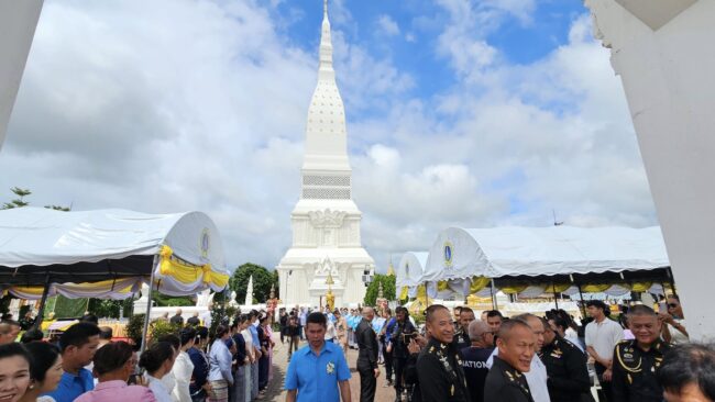 เมื่อวันที่ 28 มิถุนายน 2568 พุทธศาสนิกชน “ลูกพระธาตุ หลานพระธรรม” และชาวจังหวัดนครพนมหลายพันคนต่างหลั่งไหลมารวมตัวกันด้วยใจศรัทธา ณ อำเภอท่าอุเทน เพื่อร่วมพิธีสมโภชองค์พระธาตุท่าอุเทนอย่างพร้อมเพรียง หลังจากการบูรณะโบราณสถานที่สำคัญและศูนย์รวมจิตใจแห่งนี้เสร็จสมบูรณ์ โดยมี พลโท บุญสิน พาดกลาง แม่ทัพภาคที่ 2 พร้อมภริยา ร่วมเป็นประธานในพิธี ซึ่งแสดงให้เห็นถึงความสำคัญของงานบุญครั้งใหญ่ที่เปี่ยมไปด้วยพลังศรัทธาและเพื่อความเป็นสิริมงคล
