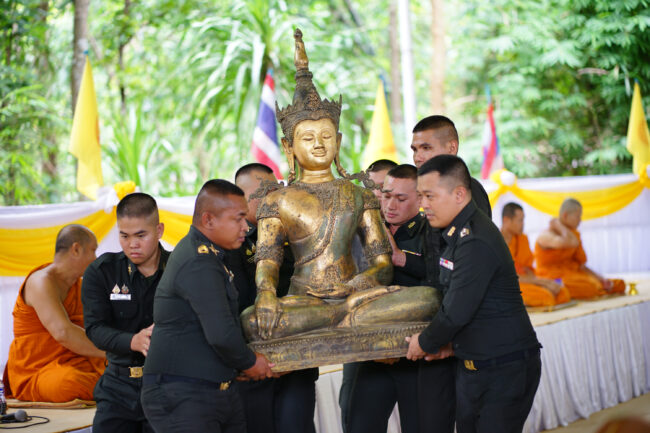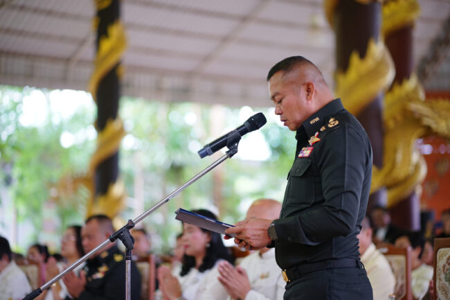 แม่ทัพภาคที่ 2 ถวาย พระประธานทรงเครื่องสมัยเชียงแสน ปางสดุ้งมาร องค์ที่ 19 จาก 20 องค์ในจังหวัดภาคอีสาน เชื่อมีพุทธคุณปัดเป่าคุณไสยมนต์ดำสิ่งชั่วร้าย นำความผาสุขสู่ประเทศชาติบ้านเมือง พร้อมเผยชีวิตหลังเกษียณไม่ขอยุ่งเกี่ยวการเมือง และพร้อมเป็นอีกหนึ่งที่จะปกป้องผืนแผ่นดินไทยทุกตารางนิ้วไว้ให้พี่น้องได้ทำการเกษตร