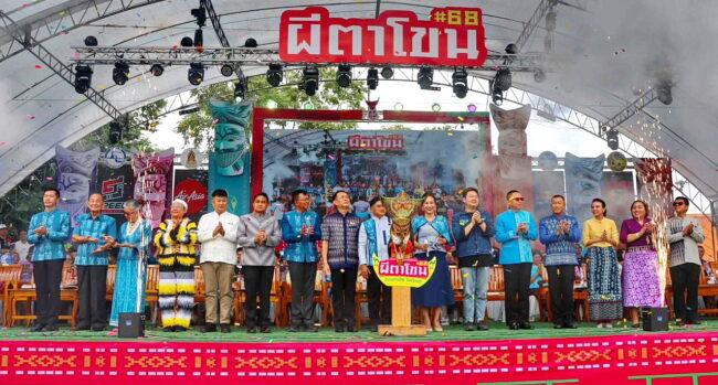 ผู้สื่อข่าวรายงาน ที่เวทีกลางลานวัฒนธรรมอำเภอด่านซ้าย นายชัยพจน์ จรูญพงศ์ ผู้ว่าราชการจังหวัดเลย เป็นประธานเปิดงานประเพณีบุญหลวงและการละเล่นผีตาโขน ประจำปี 2568 พร้อมด้วย นายธนยศ ทิมสุวรรณ สมาชิกสภาผู้แทนราษฎร เขต 3 นายณัฐวัสส์ วิริยานภาภรณ์ ผู้ตรวจราชการกระทรวงมหาดไทย เขตตรวจราชการที่ 10 นางธารตะวัน จรูญพงศ์ นายกเหล่ากาชาดจังหวัดเลย นายกิตติคุณ บุตรคุณ รองผู้ว่าราชการจังหวัดเลย นายประยูร อรัญรุท รองผู้ว่าราชการจังหวัดเลย นายไพรินทร์ ลิ่มเจริญ รองผู้ว่าราชการจังหวัดเลย นางสาวภูมารินทร์ คงเพียรธรรม ปลัดจังหวัดเลย นายธนายุทธ ใยแก้ว นายอำเภอด่านซ้าย หัวหน้าส่วนราชการ ภาครัฐวิสาหกิจ ภาคเอกชน องค์กรปกครองส่วนท้องถิ่น ประชาชน นักท่องเที่ยวนับหมื่นคน และกลุ่มผีตาโขน ร่วมเปิดงาน