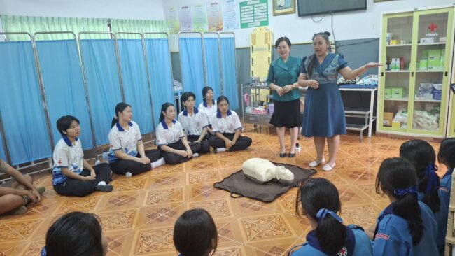 ที่โรงเรียนศรีกระนวนวิทยาคม อ.กระนวน จ.ขอนแก่น นายวัชระ คงแสนคำ ผู้อำนวยการโรงเรียนศรีกระนวนวิทยาคม ได้ทำการจำลองเหตุการณ์ช่วยชีวิตหากมีนักเรียนหมดสติ ไม่หายใจ โดยให้ทีมพยาบาลสนามจิตอาสาเข้าช่วย หลังจากพบเหตุทางกล้องวงจรปิดของโรงเรียน จนทำให้เหล่านักเรียนความรางวัลชนะเลิศระดับจังหวัดในการช่วยเหลือชีวิตอย่างถูกวิธี พร้อมกับทำการถ่ายทอดความรู้ให้กับรุ่นน้อง