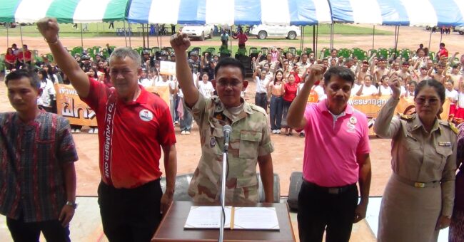 นายอำเภอสุวรรณคูหา นำหัวหน้าส่วนราชการ ผู้บริหารองค์กรปกครองท้องถิ่น กำนัน ผญบ.ตรวจฉี่ บูรณการร่วมกับเครือข่ายองค์กรงดเหล้าหนองบัวลำภู ปฏิญาณตนงดเหล้าเข้าพรรษา พร้อมนำเยาวชนปฏิญาณตนงดเหล้าเข้าพรรษาก่อนการประกวด TO BE NUMBER ONE ANCERCISE ของเยาวชนในพื้นที่