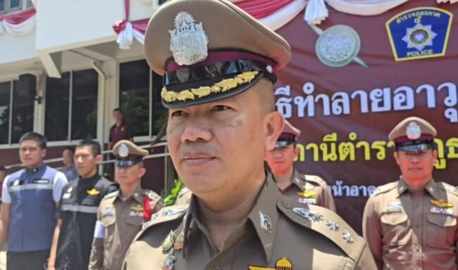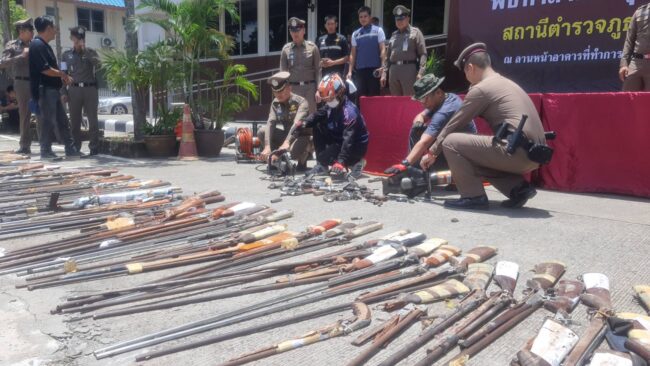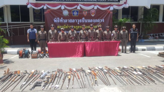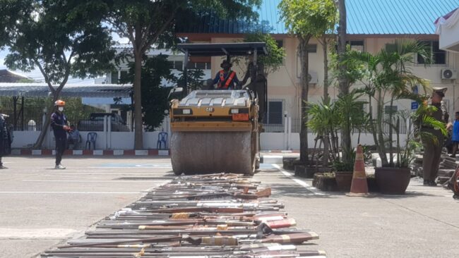 อุดรธานี – ตำรวจใช้รถบดทำลายอาวุธปืน 288 กระบอกหลังคดีสิ้นสุด หลังกวาดล้างพบอาชญากรรมลดลง