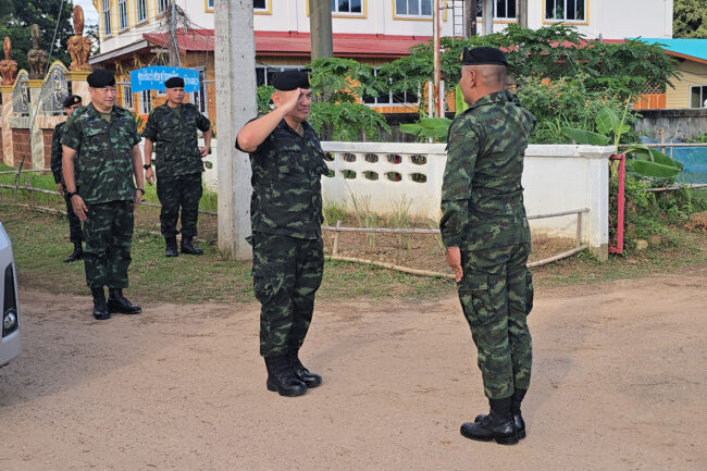 วันที่ 14 กรกฎาคม 2568 เวลาประมาณ ณ ฐาน ชป.กร.กกล.สุรศักดิ์มนตรี (206) บ้านผักขะ ต.โพนแพง อ.รัตนวาปี จ.หนองคาย พล.ท.จินตมัย ชีกว้าง เจ้ากรมกิจการพลเรือนทหารบก (หน.ฝกร.ศปก.ทบ.) พร้อมคณะ ลงพื้นที่ตรวจเยี่ยมการปฏิบัติงานด้านกิจการพลเรือนในพื้นที่ รับผิดชอบของ กกล. สุรศักดิ์มนตรี เพื่อรับทราบผลการดำเนินงานของหน่วยและปัญหาข้อขัดแย้งตลอดจนให้คำแนะนำด้านการปฏิบัติงานตามนโยบายของ ผบ.ศปก.ทบ. โดยมี ร.ท.จักรกฤษณ์ นิลคร หน.ชป.กร.กกล.สุรศักดฺิ์มนตรี ที่ 206 บรรยายสรุปผลการปฏิบัติงานที่ผ่านมา พื้นที่รับผิดชอบ 2 อำเภอ ได้แก่ อ.รัตนวาปี และ อ.โพนพิสัย ปฏิบัติงานตามกรอบพันธกิจ ในพื้นที่ชายแดน 3 ประการ, การปฏิบัติงานตามแผนโครงการ ของ ฝกร.ศปก.ทบ., โครงการคุ้มครองรักษาผลประโยชน์ของชาติพื้นที่ชายแดน, และการปฏิบัติงานตามนโยบายของผู้บังคับบัญชา และงานที่สำคัญอื่นๆ
