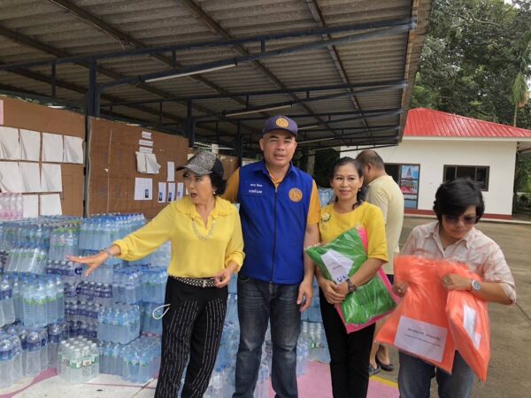 โดยแบ่งสิ่งของไปมอบให้ผู้อพยพที่ศูนย์อพยพจำนวน 3 จุด จุดแรกได้เดินทางไปมอบให้นายฉลาด ชิดชม นายอำเภอไพรบึง ที่ที่ว่าการอำเภอไพรบึง เพื่อให้นายอำเภอไพรบึงจัดสรรส่งไปยังศูนย์อพยพที่พักพิงที่ยังขาดแคลน จุดที่สองได้เดินทางไปมอบให้ผู้อพยพที่ศูนย์พักพิงวัดบ้านหนองอารี ตำบลดินแดง อำเภอไพรบึง ซึ่งมี ผู้อพยพจากอำเภอภูสิงห์ และอำเภอขุนหาญ มาพักอยู่จำนวน 230 คน ที่นี่มีเด็กและผู้สูงอายุค่อนข้างมาก