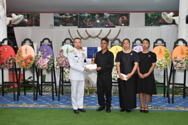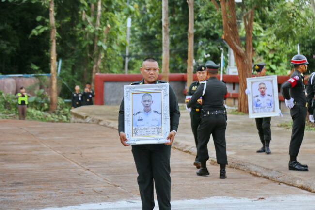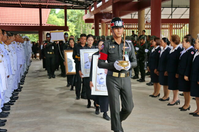 วันที่ 31 กรกฎาคม 2568 เวลา 17.00 น. ณ ศาลาบำเพ็ญกุศล สีลวิสุทโธ วัดเนรมิตวิปัสสนา อำเภอด่านซ้าย จังหวัดเลย พระบาทสมเด็จพระเจ้าอยู่หัว ทรงพระกรุณาโปรดเกล้าโปรดกระหม่อมให้ นายชัยพจน์ จรูญพงศ์ ผู้ว่าราชการจังหวัดเลย เป็นประธานในพิธีเชิญน้ำหลวงอาบศพ พร้อมเชิญพวงมาลาพระราชทานของพระบาทสมเด็จพระเจ้าอยู่หัว สมเด็จพระนางเจ้าฯ พระบรมราชินี และพระบรมวงศานุวงศ์ วางหน้าหีบศพ จ่าสิบเอก อภิรมย์ ทรงพุฒิ ชาวอำเภอด่านซ้าย จังหวัดเลย เสียชีวิตขณะปฏิบัติหน้าที่ในเหตุการณ์ความไม่สงบตามแนวชายแดนไทย-กัมพูชา