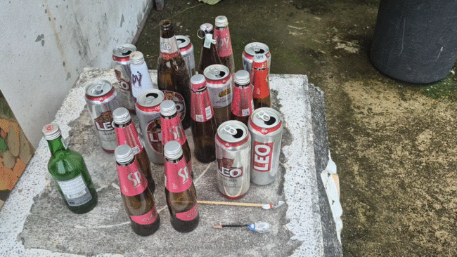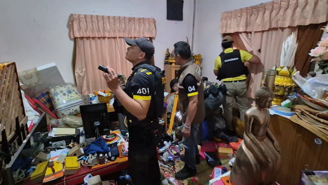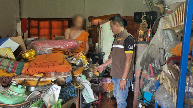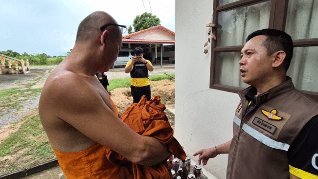 ตำรวจร่วมปกครองบุกวัดตรวจฉี่เจ้าอาวาสเป็นสีม่วงรับเสพยาบ้าก่อนบวชพบขวดเหล้าเบียร์ในกุฎิ
