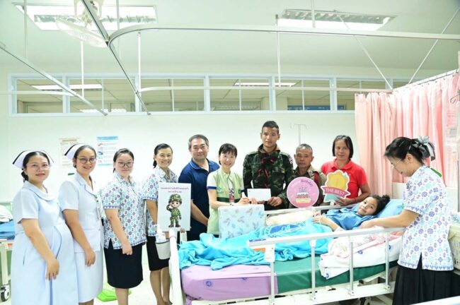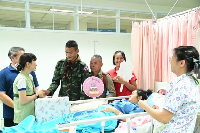 ผู้อำนวยการโรงพยาบาลมุกดาหาร เยี่ยมและให้กำลังใจภรรยา บุตร และครอบครัวทหารกล้า นายทหารกองประจำการ ซึ่งมาคลอดบุตรและพักรักษาตัว