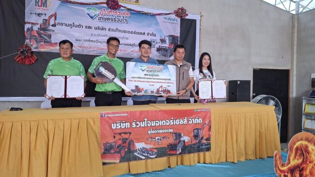 สำหรับวันนี้ บริษัทสยามคูโบต้าฯร่วมกับ หจก.คูโบต้าร่วมใจมอเตอร์เซลล์ จะมีการส่งมอบรถแทรกเตอร์ พร้อมอุปกรณ์ต่อพ่วง ให้กับ กลุ่มวิสาหกิจชุมชนกลุ่มเกษตรกรผสมผสานบ้านโคกมน สนับสนุนเกษตรกรอย่างยิ่งใหญ่ เพื่ออนาคตการเกษตรของชาวจังหวัดเลยให้ยั่งยืน