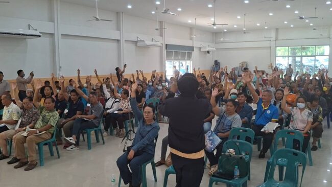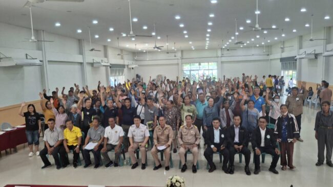 เมื่อวันที่ 15 กันยายน 2568 ที่ห้องประชุมโรงเรียนน้ำพองพัฒนศึกษา รัชมังคลาภิเษก บ้านหินกอง ต.น้ำพอง อ.น้ำพอง จ.ขอนแก่น นายอดิศักดิ์ กิตติปัญญาศิริ ปลัดอาวุโสชำนาญการอำเภอน้ำพอง, พันจ่าโทจำรัส โทอุทา นักวิชาการที่ดินชำนาญการพิเศษ สำนักงานที่ดินขอนแก่น สาขาน้ำพอง, เจ้าหน้าที่ตัวแทนนิคมสร้างตัวเองเขื่อนอุบลรัตน์ และส่วนราชการ องค์การปกครองส่วนท้องถิ่น พร้อมด้วยชาวบ้านกว่า 100 คน เข้าร่วมประชุม การทำประชาคมเพื่อประชามติยกเลิกประกาศที่สาธารณะประโยชน์ “โคกป่ากุง” โดยมี นายอัศวิน อินทราชา ประธานองค์กรเครือข่ายพัฒนาเกษตรกรไทย เป็นฝ่ายประสานงาน