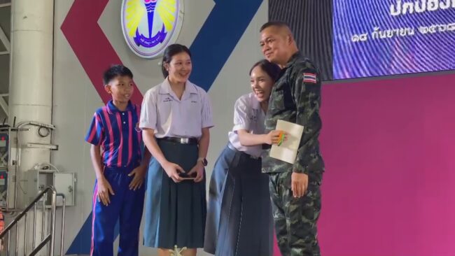 และในช่วงท้ายของกิจกรรม นักเรียนชั้น ม. 4 ได้พูดถึงความชื่นชอบในตัวท่านแม่ทัพภาคที่ 2 โดยชื่นชอบที่ท่านเสียสละเพื่อชาติ และชื่อชอบที่ท่านมีบุคลลิกคล้ายกับมนต์แคน แก่นคูณ นักร้องลูกทุ่งอีสานชื่อดัง ซึ่งท่านก็ชอบในเสียงเพลงลูกทุ่ง จึงอยากชวนท่านแม่ทัพร้องเพลงเพื่อเป็นขวัญกำลังใจ จากนั้นบิ๊กกุ้งได้โชว์ลูกคอในเพลง “คิดฮอดทุกคน” ของมนต์แคน แก่นคูน สร้างเสียงกรี๊ดดังสนั่นโรงเรียน ก่อนพูดแซวว่านักเรียนที่ร่วมร้องเพลงด้วยว่า สงสัยจะได้มาอยู่กับวงแม่ทัพซะแล้ว เสียงเพราะ อนาคตเป็นศิลปินแน่นอน ก่อนที่บิ๊กกุ้งจะแซวตัวเองว่า ให้มารับรางวัลกับมนต์แคน 2