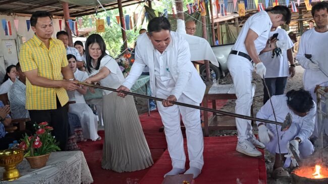 ด้านอาจารย์เก่งกาจ บังกาวงศ์ หรืออาจารย์ติงลี่ เจ้าพิธีในวันนี้กล่าวว่า ในขณะที่ทำพิธีประกาศโองการการบวงสรวง ในช่วงการเชิญวิญญาณสิบเอกจิรายุ สิงห์อ้น ให้มาสถิตในงานพิธี ก็ปรากฏว่าในช่วงที่ตรวจกำลังจะจบมีเสียงมากระซิบ ว่าช่วยกรุณาบอกแม่กับแฟนให้หน่อยว่าให้นำวัตถุมงคลที่ติดตัวมาด้วย ช่วยเอาเทลงเบ้าหลอมให้ด้วย จากนั้นก็ได้บอกกับภรรยาของสิบเอกจิรายุ ให้ทราบ ซึ่งส่วนตัวไม่ได้รู้จักกับทางญาติ และไม่เคยได้ติดต่อกันมาก่อน เพียงแค่มาทำพิธีให้ในวันนี้ พอได้ยินเสียงของ สิบเอกจิรายุ บอกมาเช่นนั้นจึงได้ไปแจ้งให้กับทางภรรยาทราบ