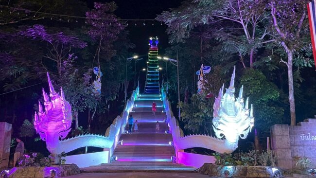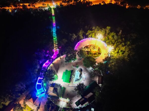 วัดพุทธาวาสภูสิงห์ ประดับไฟบันไดสวรรค์ 654 ขั้น หรือราว 1.5 กม. พร้อมไฟสวยงามบนลานธรรม มรรค ๘ บนยอดเขาภูสิงห์ รับงานบุญใหญ่ ประเพณีตักบาตรเทโวโรหะณะสักการะพระปะชาชนบาล นมัสการพระพรหมภูมิปาโล ครั้งที่ 21 ระหว่างวันที่ 8-12 ตุลาคม นี้