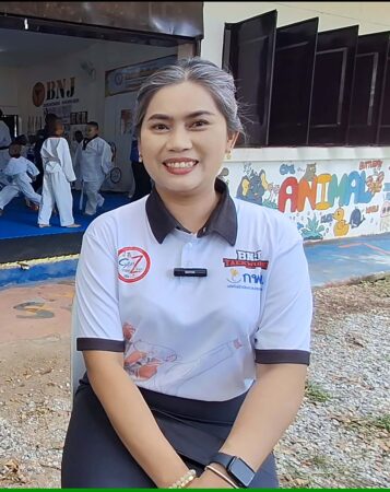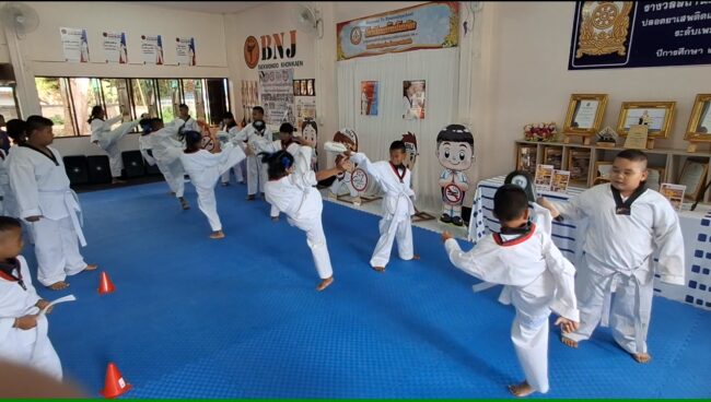 เริ่มต้นเรียนเราได้นำคุณครูที่อยู่ในคลาสเรียนของที่จังหวัดขอนแก่น มาเรียนที่นี่ เด็ก ๆ ก็มีความสุข มีความตั้งใจที่อยากเรียนรู้ พอเห็นเพื่อน ๆ เล่น เพื่อน ๆ เตะ ก็อยากเล่นอยากสนุกกับเพื่อน เด็ก ๆ มีความกระตือรือร้นอย่างมาก ในคาบเรียนทั่วไปก็มีความสุขในการเรียน ยิ่งเป็นคาบเรียนเทควันโด ที่เด็กๆได้ใช้กำลัง ใช้สมาธิ เด็กเขามีความสุข และความตื่นเต้นอย่างมากเลย