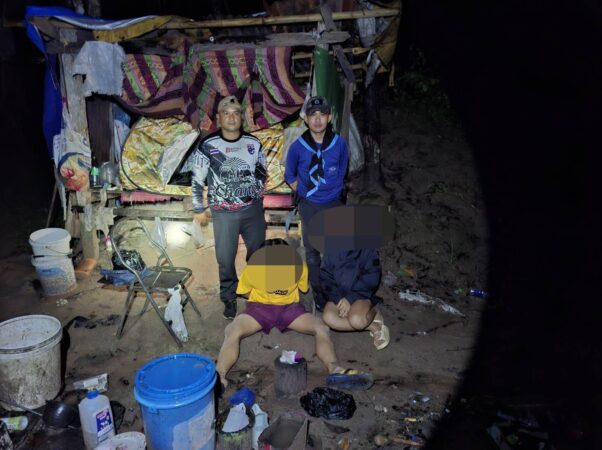 สืบเนื่องจากเมื่อวันที่ 14 ต.ค.68 เวลาประมาณ 19.30 น. ร.อ.ยุทธณา สีไชย์ ผบ.ร้อย.ฉก.ทพ.2110 ได้รับแจ้งจากชาวบ้านว่าจะมีการลักลอบนำยาบ้ามาส่งที่บริเวณกระท่อมดังกล่าว จึงได้สั่งการให้ ร.ต.พิสุทธิ์ ไชยกมล รอง ผบ.ร้อยฯ พร้อมชุดปฏิบัติการร่วมกับหน่วยงานความมั่นคงฯ ออกลาดตระเวนและเข้าซุ่มเฝ้าตรวจสถานที่รับแจ้ง กระทั่งเวลาประมาณ 21.30 น. พบ 2ผู้ต้องหาดังกล้าวขับ จยย. ฮอนด้าเวฟสีน้ำเงิน ไม่ติดแผ่นป้ายทะเบียน เข้ามาจอดหน้ากระท่อมดังกล่าวเจ้าหน้าที่จึงแสดงตัวเรียกทั้ง2 เมื่อเห็นเจ้าหน้าที่มีอาการพิรุธพยายามจะวิ่งหลบหนี แต่เจ้าหน้าที่ควบคุมตัวเอาไว้ ทั้ง 2รับสารภาพ พวกตนเสพยาบ้ามาก่อน เจ้าหน้าที่จึงตรวจค้นตัวทั้งสอง และรถจักยานยนต์ พบ ยาบ้าจำนวนหนึ่ง