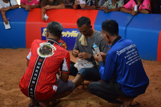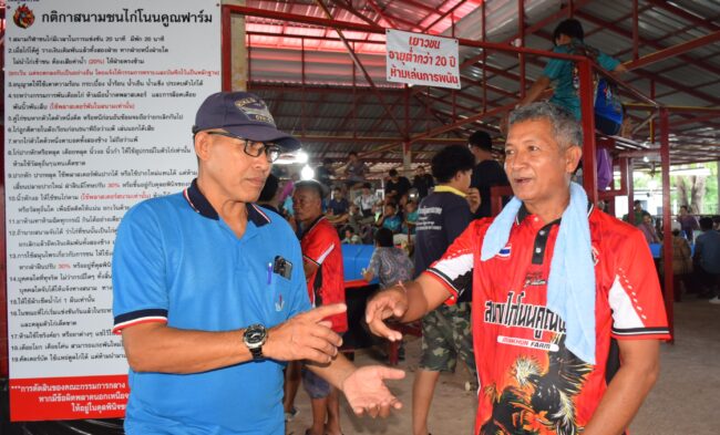 ถ้าเราฝึกให้มีการเลี้ยงไก่ และมีรายได้ให้กับเขา เขาก็จะรักการเลี้ยงไก่ชน ปัญหายาเสพติดต่างๆ เขาก็จะไม่ไปยุ่งเกี่ยว เพราะเขาได้รายได้ดีจากการเลี้ยงไก่ชน แล้วจะเป็นไก่พันธุ์ไข่ หรือไก่ชนก็เลี้ยงได้ สำหรับใครที่มีไก่ในตำบลและในอำเภอ ในจังหวัด อยากจะให้มาโชว์ฝีไม้ลายมือ โชว์ฝีเท้าก็เอามา โชว์ที่สนามประลองฝีมือของตนได้เลย เพราะไก่แต่ละสายพันธุ์จะไม่เหมือนกัน บางสายพันธุ์จะเก่งมากๆ และเจ้าของไม่ยอมขาย ขนาดมีคนให้ราคาเป็นแสนเป็นล้านก็ไม่ขาย จะสงวนเอาไว้ทำพันธุ์