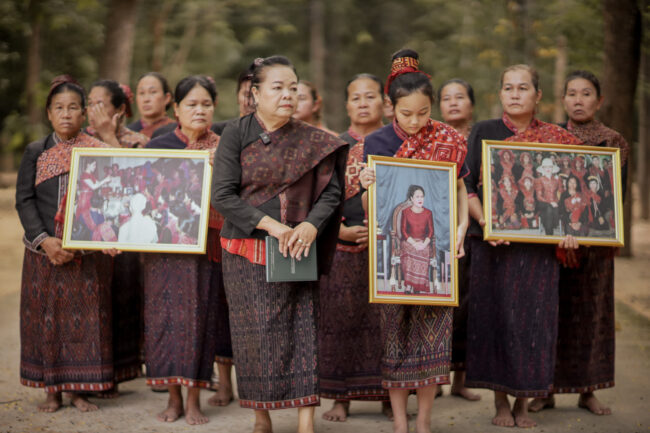 เมื่อวันที่ 27 ตุลาคม 2568 ผู้สื่อข่าวประจำจังหวัดกาฬสินธุ์ รายงานว่า หลังการเสด็จสู่สวรรค์คาลัยของสมเด็จพระนางเจ้าสิริกิติ์ พระบรมราชินีนาถ พระบรมราชชนนีพันปีหลวง จังหวัดกาฬสินธุ์หรือเมืองน้ำดำ ที่เป็นจังหวัดหนึ่งซึ่งพระบรมราชชนนีพันปีหลวง ทรงเสด็จพระราชดำเนินในหลายอำเภอ โดยเฉพาะที่ อ.คำม่วง และทรงก่อตั้งศูนย์ส่งเสริมการท่อผ้าไหมแพรวาบ้านโพน มูลนิธิส่งเสริมศิลปาชีพ ในสมเด็จพระนางเจ้าสิริกิติ์พระบรมราชินีนาถ (เริ่มโครงการเมื่อ ปี พ.ศ.2521) ทำให้มีประชาชนที่สนใจติดตามพระราชกรณียกิจของ พระบรมราชชนนีพันปีหลวง พากันเดินทางไปย้อนรอยเพื่อรำลึกถึงพระองค์ท่าน เช่นเดียวกัน ดร.พรสวรรค์ พรดอนก่อ แม่ครูด้านหมอลำชาวผู้ไทยจังหวัดกาฬสินธุ์ ซึ่งเป็นอาจารย์ประจำวิทยาลัยนาฎศิลป์กาฬสินธุ์ ก็ได้พาครอบครัวไปย้อยรอยจนเกิดความทราบซึ้ง ปราบปลื้มปิติ จึงได้แต่งกลอนลำอาลัยองค์พระพันปีหลวง ร่วมกับกลุ่มสตรีชาวผู้ไทยบ้านโพนพร้อมใจกันยืนถือพระบรมฉายาลักษณ์ และขับร้องหมอลำ (กึ่งด้นสด) ที่กล่าวถึงความรู้สึกของพสกนิกรชาวผู้ไทยบ้านโพน ที่มีต่อพระองค์ท่าน