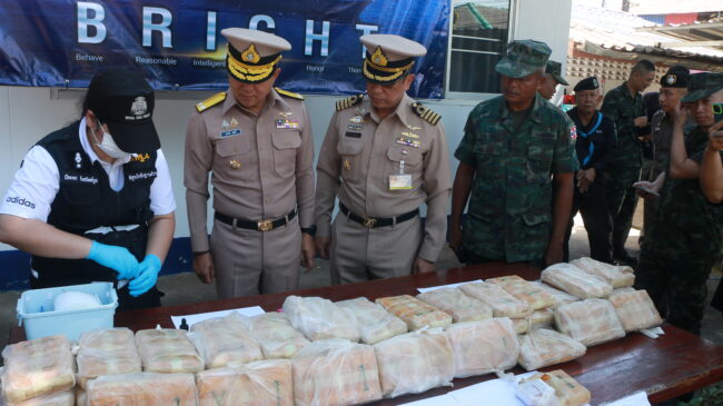 สืบเนื่องจาก เมื่อวันที่ 26 ต.ค.68 พล.ร.ต.ณรงค์ เอมดี ผบ.นรข. ได้รับแจ้งจากสายว่า จะมีการลักลอบ ส่งยาเสพติดกันที่บริเวณเขื่อนป้องกันตลิ่งริมฝั่งแม่น้ำโขง หน้าสถานีโรงไฟฟ้าย่อย บ้านแดนเมือง ตำบลวัดหลวง อำเภอโพนพิสัย จึงได้สั่งการ น.อ.วิศิษฐ์พงศ์ เจริญวิชยเดช ผบ.นรข. เขตหนองคาย จัดชุดปฏิบัติการเฝ้าตรวจพื้นที่ร่วมกับ ร.อ.ภาสพล สีทองเกตุ หน.หน่วยเรือโพนพิสัย และประสานหน่วยงานความมั่นคงในพื้นที่ ร่วมกันจัดกำลังเข้าดักซุ่มพื้นที่ ภายใต้อำนวยการของ พล.ร.ต.ณรงค์ เอมดี ผบ.นรข.,น.อ. วิศิษฐ์พงศ์ เจริญวิชยเดช ผบ.นรข.เขตหนองคาย,พ.อ.เรวัฒ ธรรมจิรเดช รอง ผบ.บก.ควบคุมที่ 2 กกล.สุรศักดิ์มนตรี