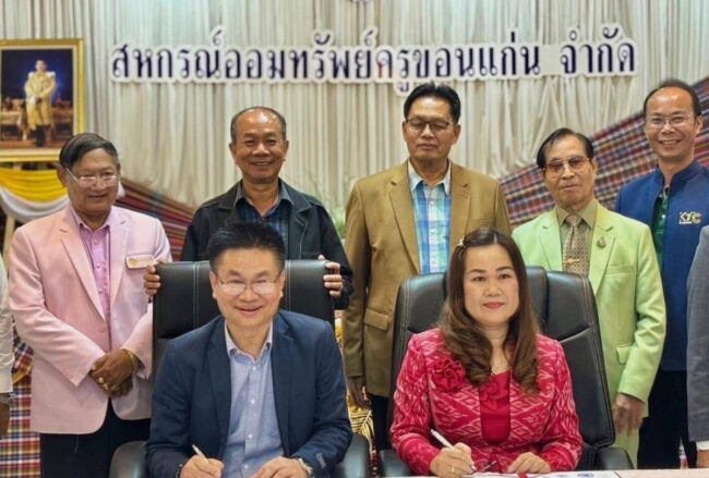 เมื่อวันที่ 26 ตุลาคม 2568 ที่สำนักงานสหกรณ์ออมทรัพย์ครูขอนแก่น จำกัด ได้จัดพิธีลงนามสัญญาเงินกู้ระหว่าง สหกรณ์ออมทรัพย์ครูขอนแก่น จำกัด กับ ชุมนุมสหกรณ์ออมทรัพย์ภาคตะวันออกเฉียงเหนือ จำกัด วงเงินรวม 1,000 ล้านบาท ในอัตราดอกเบี้ย ร้อยละ 3.50 ต่อปี เพื่อเสริมสร้างสภาพคล่องทางการเงิน เพิ่มประสิทธิภาพในการบริหารจัดการ และลดภาระต้นทุนดอกเบี้ยของสหกรณ์