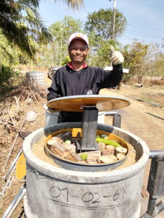 “เราต้องการให้หลักสูตรมีมาตรฐานความรู้ เพื่อทำให้ผู้เรียนเข้าใจและเกิดทักษะได้จริง (รับ) จัดการปัญหาที่เกิดขึ้นได้ด้วยตัวเอง (ปรับ) และใช้งานเตานี้ได้อย่างมีประสิทธิภาพ (ใช้) รวมถึงสามารถเป็นนวัตกรที่แก้ปัญหาหรือส่งต่อองค์ความรู้ให้กับเพื่อนเกษตรกรคนอื่นๆ ได้ (ถ่ายทอด) โดยตลอด 1 ปีของโครงการ มีการอบรมไปแล้วทั้งสิ้น 5 รุ่น มีนวัตกรที่ผ่านการอบรม 119 คน”
