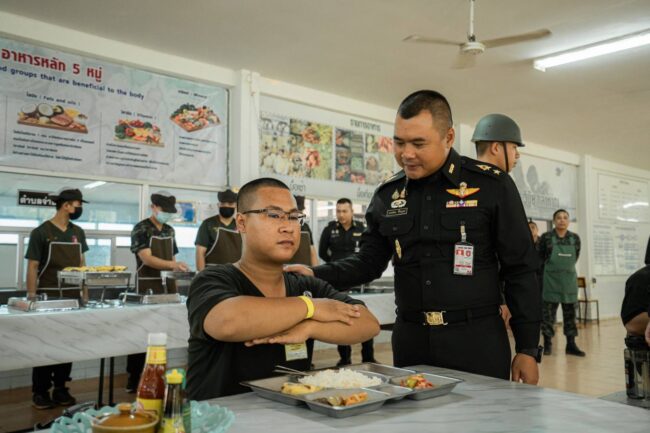 ผู้บังคับกองพันทหารราบที่ 3 กรมทหารราบที่ 8 ตรวจเยี่ยมและร่วมรับประทานอาหารกับทหารใหม่ หน่วยฝึกทหารใหม่ กองพันทหารราบที่ 3 กรมทหารราบที่ 8