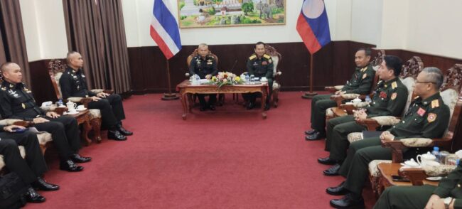 วันที่ 7 พ.ย. 68 ผู้สื่อข่าวรายงานว่า ณ ห้องรับรอง กรมพัวพันต่างประเทศ กระทรวงป้องกันประเทศ ค่ายโพนเค็ง ม.ไซเสดถา นครหลวงเวียงจันทน์ สปป.ลาว พล.ท.วีระยุทธ รักศิลป์ มทภ.2 พร้อมคณะฯ เดินทางเยือน สปป.ลาว พบปะพัฒนาสัมพันธ์ กับ พล.ต.วันทอง บุดตะวง รอง หน.กรมใหญ่เสนาธิการกองทัพ กองทัพประชาชนลาว เมื่อวันที่ 6 พ.ย. 68 ที่ผ่านมา เนื่องในโอกาสเข้ารับตำแหน่งใหม่ของแม่ทัพภาคที่ 2 เพื่อกระชับความสัมพันธ์อันดีระหว่างกองทัพไทยกับกองทัพประชาชนลาว โดยได้หารือความร่วมมือในประเด็นสำคัญ ได้แก่ การเสริมสร้างความมั่นคงตามแนวชายแดน, การป้องกันและปราบปรามยาเสพติด, การป้องกันอาชญากรรมข้ามชาติและแก๊งคอลเซ็นเตอร์, การแลกเปลี่ยนข้อมูลข่าวสารด้านความมั่นคง และ การลาดตระเวนร่วมระหว่างสองกองทัพ