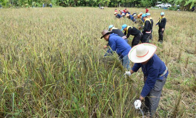 นายอำเภอศรีบุญเรือง รวมพลคนถือเคียว เกี่ยวข้าวสามัคคี คนดีศรีบุญเรือง เก็บเกี่ยวข้าวหนีฝนก่อนจะเจออิทธิพลของพายุ “คัลแมกี” ตกหนักทางภาคอีสาน อาจทำให้เกิดน้ำท่วมฉับพลันและน้ำป่าไหลหลาก