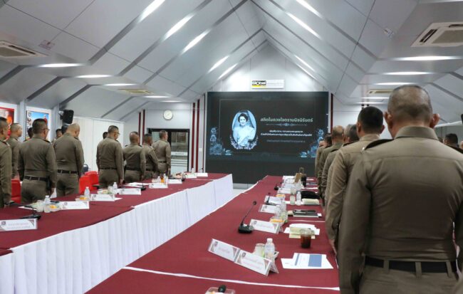 ทั้งนี้ก่อนการประชุม พล.ต.ท.สันติ ชัยนิรามัย ผบช.ภ.4 ได้นำข้าราชการาตำรวจถวายความอาลัยสมเด็จพระนางเจ้าสิริกิติ์ พระบรมราชินีนาถ พระบรมราชชนนีพันปีหลวง พร้อมมอบเงินบำรุงขวัญให้กับข้าราชการตำรวจบาดเจ็บจากการปฏิบัติหน้าที่ ก่อนรับฟังบรรยายสรุปผลการดำเนินงานของตำรวจภูธร จ.กาฬสินธุ์, นวัตกรรมการวิเคราะห์อาชญากรรม สภ.เมืองกาฬสินธุ์ เพื่อการป้องกัน และปราบปรามอาชญากรรมในพื้นที่ และCCTV MAP กก.สส.ภ.จว.กาฬสินธุ์, รับฟังผลการปฏิบัติงานยาเสพติด และอาชญากรรมทางเทคโนโลยี