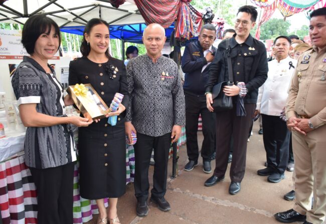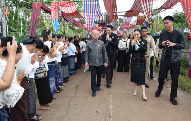 ร่วมให้การต้อนรับและนำเข้าชมผลิตภัณฑ์ของ “วิชชาลัย” ลุมภู วิชชาลัยแห่งผ้าที่โดดเด่นด้วยการออกแบบและพัฒนาผ้าทอพื้นเมืองในรูปแบบทันสมัย สวมใส่ง่าย ภายใต้แนวคิด Sustainable Fashion โดยผสมผสาน นวัตกรรมและภูมิปัญญา เข้ากับแนวการรักษ์โลก อาทิ การคิดค้นเส้นใยธรรมชาติ จากใยบัวหลวง ที่จัดตั้งขึ้นเพื่อเป็นแหล่งเรียนรู้ตลอดชีวิตสำหรับประชาชนในพื้นที่ มุ่งเน้นการส่งเสริมภูมิปัญญาท้องถิ่น การพัฒนาทักษะอาชีพ และการสร้างความเข้มแข็งให้กับชุมชนอย่างยั่งยืน ตามนโยบายสำคัญของกระทรวงมหาดไทย