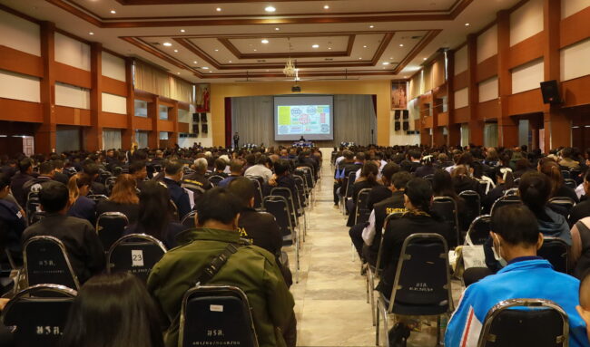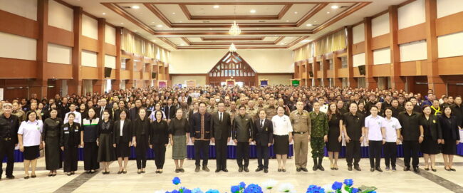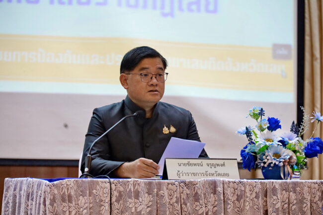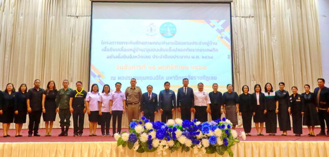 ผู้สื่อข่าวรายงาน ที่ หอประชุมชุมทองวิไล มหาวิทยาลัยราชภัฏเลย นายชัยพจน์ จรูญพงศ์ ผู้ว่าราชการจังหวัดเลย เป็นประธานในพิธีเปิดโครงการยกระดับศักยภาพคณะทำงานป้อมยามประจำหมู่บ้าน เพื่อขับเคลื่อนหมู่บ้าน/ชุมชนเข้มแข็งปลอดภัยจากยาเสพติด ประจำปีงบประมาณ 2569 โดยมี รองผู้ว่าราชการจังหวัดเลย ปลัดจังหวัดเลย ป้องกันจังหวัดเลย หัวหน้าส่วนราชการ นายอำเภอ สาธารณสุขอำเภอ ป้องกันอำเภอ คณะทำงานป้อมยามประจำหมู่บ้านจากทุกอำเภอ ข้าราชการ และเจ้าหน้าที่จากหน่วยงานที่เกี่ยวข้อง เข้าร่วมพิธีเปิดโครงการฯ กว่า 1,000 คน