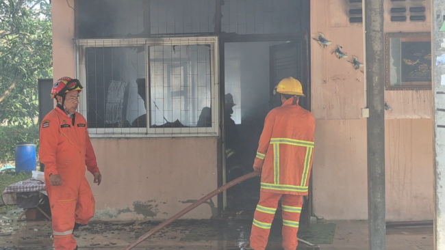 ที่เกิดเหตุ พบเพลิงกำลังลุกไหม้บ้านพักครู 2 ชั้น จุดที่เพลิงกำลังลุกไหม้อยู่ที่ห้องครัวชั้นล่าง เจ้าหน้าที่ได้ฉีดน้ำดับไฟ ควบคุมเพลิงไม่ให้ลุกลาม ใช้เวลาประมาณ 20 นาทีจึงควบคุมเพลิงไว้ได้ พบว่าอุปกรณ์เครื่องครัว และสิ่งของภายในห้องครัวถูกไฟไหม้เสียหายทั้งหมด ส่วนชั้นบนบ้านเสียหายเพียงเล็กน้อย