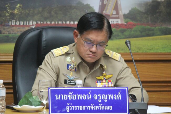 ผู้ว่าฯ เลย ห้องประชุมภูกระดึง ชั้น 2 ศาลากลางจังหวัดเลย นายชัยพจน์ จรูญพงศ์ ผู้ว่าราชการจังหวัดเลย พร้อมด้วยหัวหน้าส่วนราชการ ผู้แทนส่วนราชการ จากหน่วยงานที่เกี่ยวข้อง เข้าร่วมประชุมติดตามสถานการณ์และแก้ไขปัญหาไฟป่า หมอกควัน และฝุ่นละอองขนาดเล็ก PM 2.5 ผ่านระบบการประชุมทางไกล (VCS)