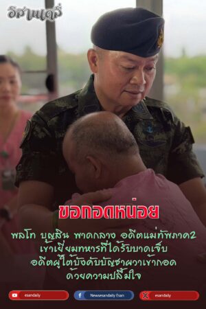จากนั้นพลโทบุญสิน ได้เดินทักทาย พูดคุย และให้กำลังใจทหารทุกนาย ระหว่างนั้นมีทหารนายหนึ่งโผเข้ากอดแม่ทัพกุ้งด้วยความดีใจ ขณะที่อีกรายซึ่งยังบาดเจ็บอยู่ แต่ยืนยันว่าอยากกลับไปช่วยเพื่อนทหารที่แนวหน้า ซึ่งแม่ทัพกุ้งได้ปลอบใจและขอให้รักษาตัวจนหายดี ก่อนกลับไปปฏิบัติหน้าที่