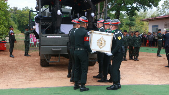 วันที่ 12 ธันวาคม 2568 มณฑลทหารบกที่ 24 จังหวัดอุดรธานี ได้จัดกำลังพลและยานพาหนะ ประกอบพิธีเคลื่อนศพ พลทหารธนรัตน์ จันทร์ประทัด อายุ 22 ปี กองกำลังรบกองทัพภาคที่ 1 กำลังพลกองพลทหารราบที่ 11 ตำแหน่งพลปืนเล็ก สังกัดกรมทหารราบที่ 112 กองพันทหารราบที่ 3 (ร.112 พัน.3) วีรบุรุษทหารกล้าผู้ซึ่งพลีชีพเสียชีวิตในขณะปฏิบัติหน้าที่ป้องกันอธิปไตยตามแนวชายแดนไทย-กัมพูชา ถูกกระสุนปืน ค. ของฝ่ายกัมพูชาตกใส่ในสมรภูมิบึงตะกวน-บ้านคลองแผง อ.ตาพระยา จ.สระแก้ว ถูกส่งไปยัง รพ.ค่ายจักรพงษ์ และเสียชีวิตในเวลาต่อมา กลับสู่บ้านเกิดที่บ้านเลขที่ 41 หมู่ที่ 8 บ้านวังชมภู ต.เฝ้าไร่ อ.เฝ้าไร่ จ.หนองคาย