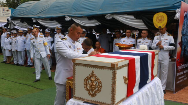 สุดเศร้า ร่างพลทหารธนรัตน์ จันทร์ประทัด ทหารกล้าหลังพลีชีพบึงตะกวน ปกป้องชาติถึงบ้านเกิด ประกอบพิธีอย่างสมเกียรติ ปู่ย่าเผยหลานทำดีที่สุดแล้ว