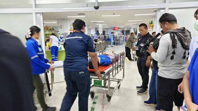 เมื่อวันที่ 13 ธ.ค. 2568 ที่ รพ.ศรีสะเกษ นายอนุรัตน์ ธรรมประจำจิต ผวจ.ศรีสะเกษ เข้าเยี่ยมและให้กำลังใจผู้ได้รับบาดเจ็บจากเหตุทหารกัมพูชายิงจรวดหลายลำกล้อง BM-21 เข้ามาในพื้นที่บ้านเรือนประชาชน ในพื้นที่ ต.เสาธงชัย อ.กันทรลักษ์ จ.ศรีสะเกษ เป็นเหตุให้มีพลเรือนได้รับบาดเจ็บจำนวน 6 ราย ประกอบด้วย 1.นายแก้ว กุนนารา อายุ 52 ปี ถูกสะเก็ดระเบิด BM-21 ข้างหลุมหลบภัย มีแผลฉีกขาดที่แขนขวา 2.นายรำไพ สุวรรณศิลป์ อายุ 68 ปี เป็นเจ้าหน้าที่ ชรบ.ได้รับบาดเจ็บศีรษะกระแทกพื้น มีแผลฉีกขาดที่ท้ายทอย และต้นแขนซ้าย มีเลือดออกในสมอง อาการสาหัสถูกนำส่งต่อไปยัง รพ.สรรพสิทธิประสงค์ จ.อุบลราชธานี
