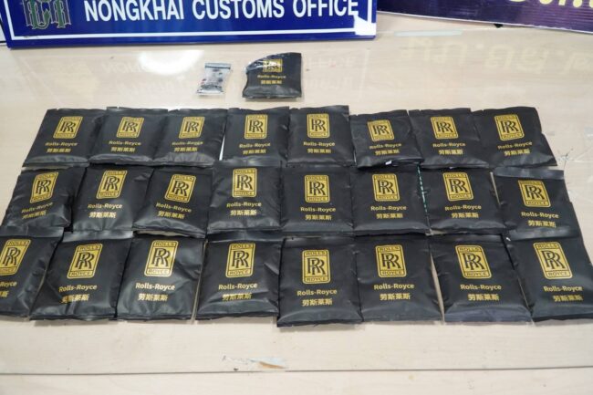 การจับกุมในครั้งนี้ เมื่อ 12 ธ.ค.68 หญิงลาว เดินทางเข้ามากับรถโดยสารระหว่างประเทศประจำสะพานมิตรภาพ ไทย-ลาว พร้อมกระเป๋าเดินทาง 1 ใบ และตุ๊กตา 1 ตัว เข้ามายังจุดตรวจสัมภาระผู้โดยสาร เจ้าหน้าที่ศุลกากรประจำด่านพรมแดนหนองคาย เจ้าหน้าที่ฯ ฝ่ายสืบสวนและปราบปราม ได้ตรวจกระเป๋าและสัมภาระของผู้โดยสาร ตามปกติ หญิงสาวดังกล่าวท่าทีมีพิรุธจะไม่ยอมให้ตรวจ เจ้าหน้าที่ตรวจลองจับตุ๊กตามีความแข็งความผิดปกติ ต่างจากตุ๊กตาทั่วไป จึงนำไปตรวจด้วยเครื่องเอกซเรย์ พบซองพลาสติกสีดำ โลโก้ Rolls-Royce จำนวน 25 ซอง ซุกซ่อนอยู่ภายในตุ๊กตาดังกล่าว ภายในบรรจุผงสีขาว จึงได้นำตัวอย่างผงสีขาวมาทดสอบด้วยน้ำยา ONCB051 Marquis Reagent โดยน้ำยาเปลี่ยนจากใสไม่มีสี เชื่อว่ามีส่วนผสมของสารเสพติดประเภท Methamphetamine เป็นยาเสพติดให้โทษประเภท 1 HAPPY WATER รวมจำนวน 25 ซอง น้ำหนักกว่า 1.5 กิโลกรัม เจ้าหน้าที่จึงนำตัวพร้อมของกลางส่ง สภ.เมืองหนองคายดำเนินคดีตามกฎหมายต่อไป