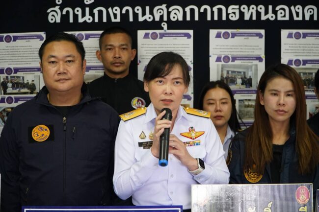 เมื่อวันที่ 12 ธันวาคม 2568 ผู้สื่อข่าวรายงานว่า ที่ ด่านพรมแดนหนองคาย สะพานมิตรภาพไทย-ลาว อ.เมืองหนองคาย นางสาววรรณา ผู้อุตส่าห์ นายด่านศุลกากรหนองคาย ปฏิบัติหน้าที่ ผู้อำนวยการสำนักงานศุลกากรหนองคาย,นางสาวกัญญ์ชิสา ประดิษฐสุวรรณ์ ผู้อำนวยการส่วนควบคุมทางศุลกากร,ร.อ.หาญชัย พรมบุญ หัวหน้าฝ่ายยุทธการและการข่าว บก.ควบคุที่ 2 กกล.สุรศักดิ์มนตรี,นายชัยสิทธิ์ คำภาจันทร์ หัวหน้าศูนย์อำนวยการป้องกันและปราบปรามยาเสพติดจังหวัดหนองคาย พร้อมหน่วยงานที่เกี่ยวข้อง ร่วมกันจับกุมผู้ต้องหาหญิงชาวลาว ได้ยาเสพติดให้โทษประเภท 1 Happy Water กว่า 1.5 กิโลกรัม