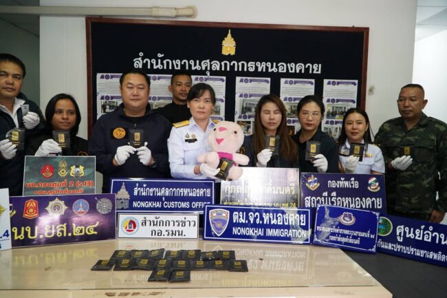 มาทุกรูปแบบ เจ้าหน้าศุลกากรหนองคาย รวบหญิงชาวลาว ซุก Happy Water ยาเสพติด ไว้ในตุ๊กตากว่า 1.5 กิโลกรัม รับว่าเป็นแม่บ้านที่รีสอร์ทแห่งหนึ่งที่ภูทับเบิก