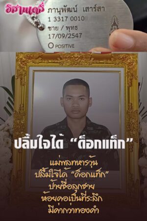 แม่พลทหารวุ้น ปลื้มใจได้ “ด็อกแท็ก” ป้ายชื่อลูกชาย ห้อยคอเป็นที่ระลึก เผย มีค่ากว่าทองคำหลายพันเท่า
