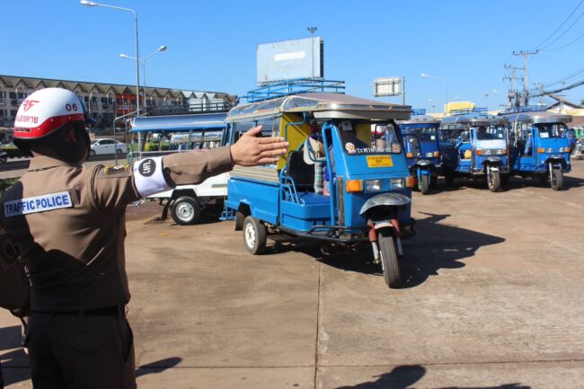 ด้วย สภ.เมืองหนองคาย ได้ร่วมกับหน่วยงานภาครัฐและเอกชนร่วมกันกำหนดแนวทางการแก้ไขปัญหาการให้บริการรถสามล้อรับจ้างและการจัดระเบียบพื้นที่บริเวณด่านพรมแดนสะพานมิตรภาพไทย-ลาว อ.เมืองหนองคาย เพื่อให้บริการเป็นไปด้วยความเป็นระเบียบ มีมาตรฐาน มีความปลอดภัย โดยการจัดระเบียบรถสามล้อรับจ้าง ทั้งในด้านสถานที่จอด จุดรับ-ส่งผู้โดยสาร การลงทะเบียนผู้ให้บริการ การแสดงอัตราค่าโดยสาร มาตรการด้านความปลอดภัยทางถนนอย่างเคร่งครัด