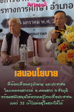 พร้อมสนับสนุนให้พรรคครูไทยเพื่อประขาชนเบอร์พรรคระบบบัญชีรายชื่อเบอร์ 32เพื่อให้เข้าไปต่อสู้ในสภาให้ได้สส.จำนวนมากเพื่อปรับแก้ไขข้อระเบียบ กฎหมายที่เป็นธรรมให้กับครูทุกระดับ ข้าราชการทุกกระทรวง ลูกจ้างต่างๆที่ได้รับผลกระทบด้านอาชีพ นักเรียน นักศึกษาในระบบต่างๆคือการศึกษาในระบบ การศึกษานอกระบบและการศึกษาตามอัธยาศัย ส่วนรร.เอกชนพรรคครูไทยพร้อมช่วยผลักดันพรบ.การศึกษา โรงเรียนเอกชนให้มีความเป็นอิสระ และเงินรายหัวของนักเรียนได้รับจัดสรร 100 เปอร์เซ็น