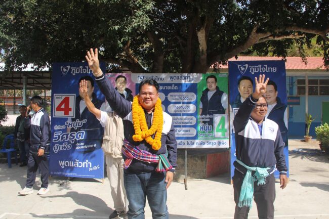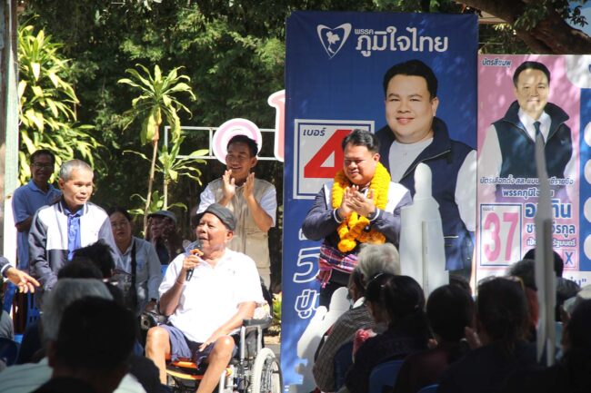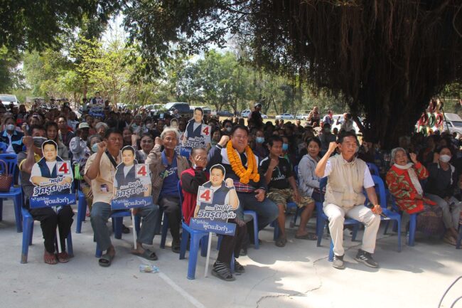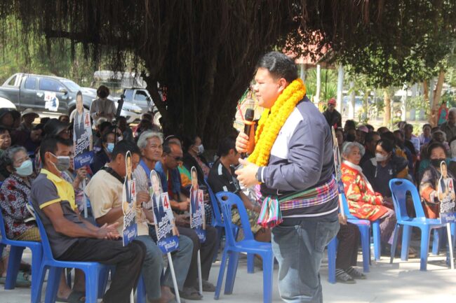 เวทีหาเสียงคึกคัก “วิศรุต ปู่เพ็ง” ผู้สมัคร สส.ขอนแก่น เขต 6 เบอร์ 4 พรรคภูมิใจไทย ชูนโยบายพรรคพร้อมเป็นรัฐบาล แก้ปัญหาปากท้องประชาชนตรงจุด ทั้งการศึกษา ลดค่าไฟ คนละครึ่ง และดันราคาพืชผลเกษตรให้ดีกว่าเดิม ขณะที่พ่อนั่งรถเข็นช่วยหาเสียง ฝากลูกเรื่องเงินผู้สูงอายุจนได้รับเสียงปรบมือกึกก้อง