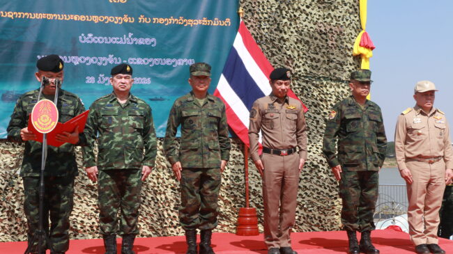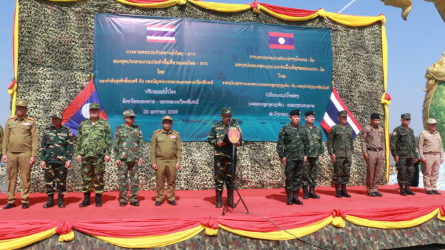 วันที่ 28 ม.ค.69 ณ ห้องประชุมชั้น 2 ด่านพรมแดนสะพานมิตรภาพไทย – ลาว แห่งที่ 1 (ขาออก) อำเภอเมืองหนองคาย จังหวัดหนองคาย พลตรี มงคล หอทอง ผู้บัญชาการกองกำลังสุรศักดิ์มนตรี/หัวหน้าชุดประสานงานประจำพื้นที่ชายแดนไทย – ลาว ร่วมกับ พลจัตวาบุนลิด สีสุพอน หัวหน้าการทหาร กองบัญชาการทหาร นครหลวงเวียงจันทน์ สปป.ลาว เป็นประธานการประชุมชุดประสานงานประจำพื้นที่ชายแดนไทย – ลาว (หนองคาย-นครหลวงเวียงจันทน์)