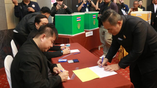 จากนั้น ผวจ.หนองคาย ได้ทดลองทำการเลือกตั้งลงคะแนนเลือกตั้ง ส.ส.แบบแบ่งเขต แบบบัญชีรายชื่อ และบัตรเลือกตั้งการออกเสียงประชามติ ณ หน่วยเลือกตั้งจำลอง ที่จัดเตรียมไว้ภายในห้องประชุม