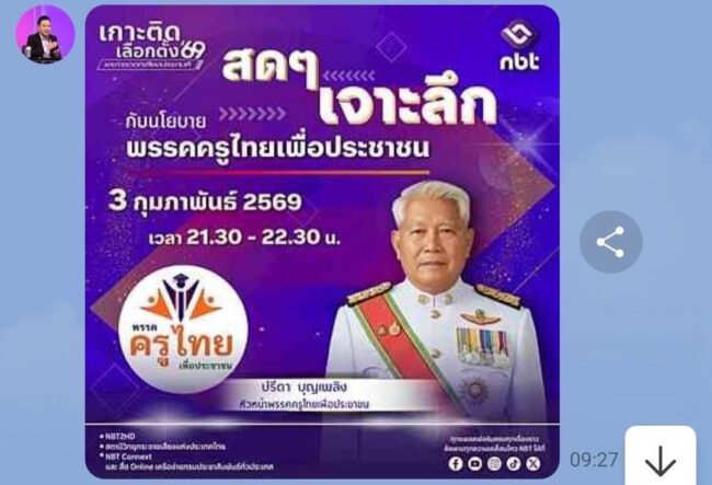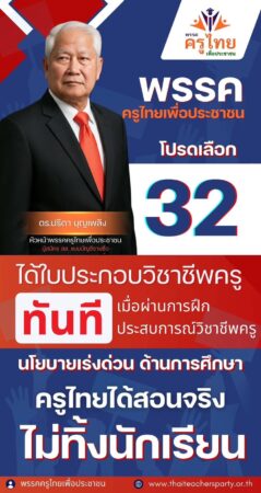 หัวหน้าพรรคครูไทยเพื่อประชาชน ระบุว่า พรรคต้องการดูแลครูทุกสังกัด และพร้อมที่จะแก้ปัญหาทั้งหมด นี่คือสิ่งที่พรรคจะทำ