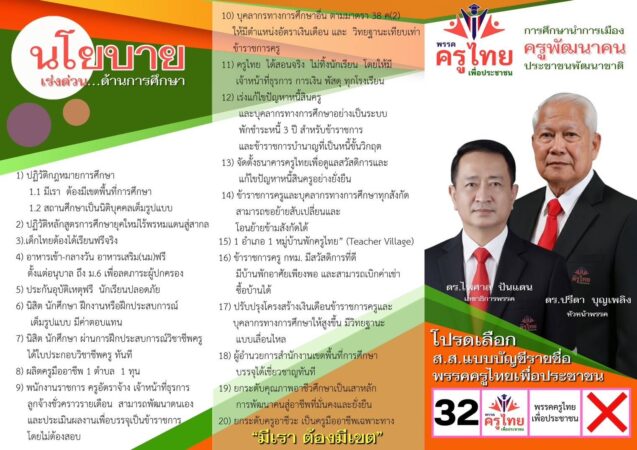 พรรคครูไทยเพื่อประชาชน ชูนโยบายปฏิวัติการศึกษาไทย แก้หนี้ครู ดูแลนักเรียน ย้ำเรื่องของการศึกษาใกล้ชิดกับทุกคน ตั้งแต่เกิดจนตาย