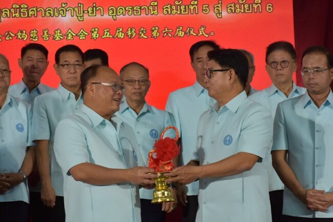 เมื่อเวลา 09.00 น. วันที่ 6 กุมภาพันธ์ ที่ห้องประชุมปรีชา ชัยรัตน์ มูลนิธิศาลเจ้าปู่-ย่า จ.อุดรธานี เขตเทศบาลนครอุดรธานี ได้มีพิธีส่งมอบตำแหน่งประธานมูลนิธิศาลเจ้าปู่-ย่า จ.อุดรธานีจากนายวิศิษฐ์ เอื้อวงศ์กุล ประธานสมัยที่ 5 มาเป็นนายชาญชัย ธนปุระ ประธานสมัยที่ 6 โดยมีนายณัฐพงศ์ คำวงศ์ปิน รอง ผวจ.อุดรธานี นายกิตติกร ทีฆธนานนท์ นายกเทศมนตรีนครอุดรธานี นางรวงทอง พลธิราช วัฒนธรรมจังหวัดอุดรธานี นายอนุพงศ์ มกรานุรักษ์ ปธ.สภาอุตสาหกรรมจังหวัดอุดรธานีนายจิณณ์ ชัยรัตน์ รองปธ.หอการค้าจังหวัดอุดรธานี